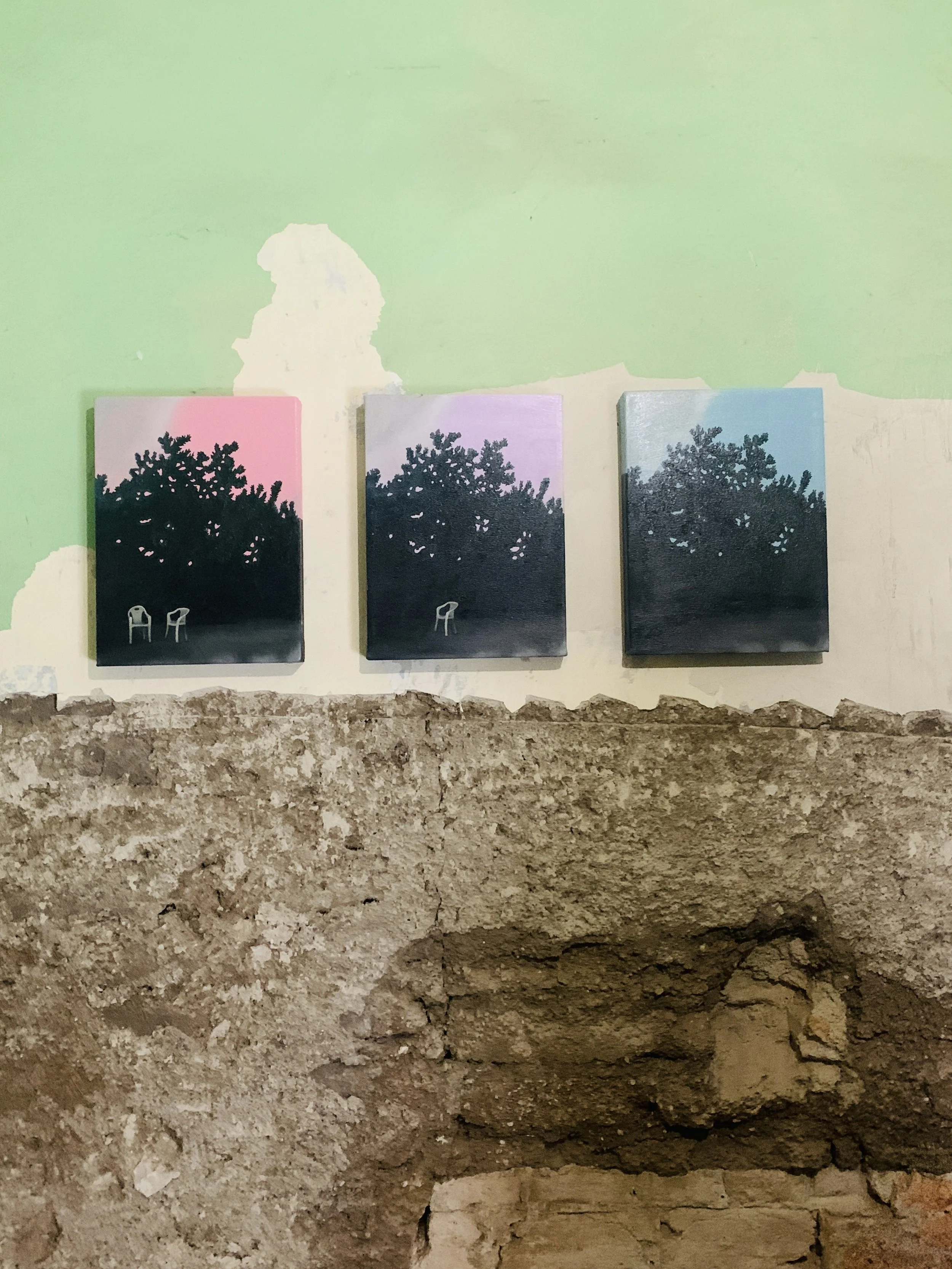 En este proceso plasmo el carácter de la historia; no busco la variedad de azules del cielo, sino transiciones pictóricas que acompañen espacios marcados por la vejez, el abandono y la nostalgia del recuerdo. La pintura es mi recurso necesario: a veces contrasto luz y sombra como pareja fiel al tiempo, y otras, apago colores devorados por un sol abrasante. Mis lienzos, desde lo rectangular hasta la miniatura, se transforman o rompen su estructura, pues mi obra se adapta al lienzo tanto como el lienzo a mi obra.